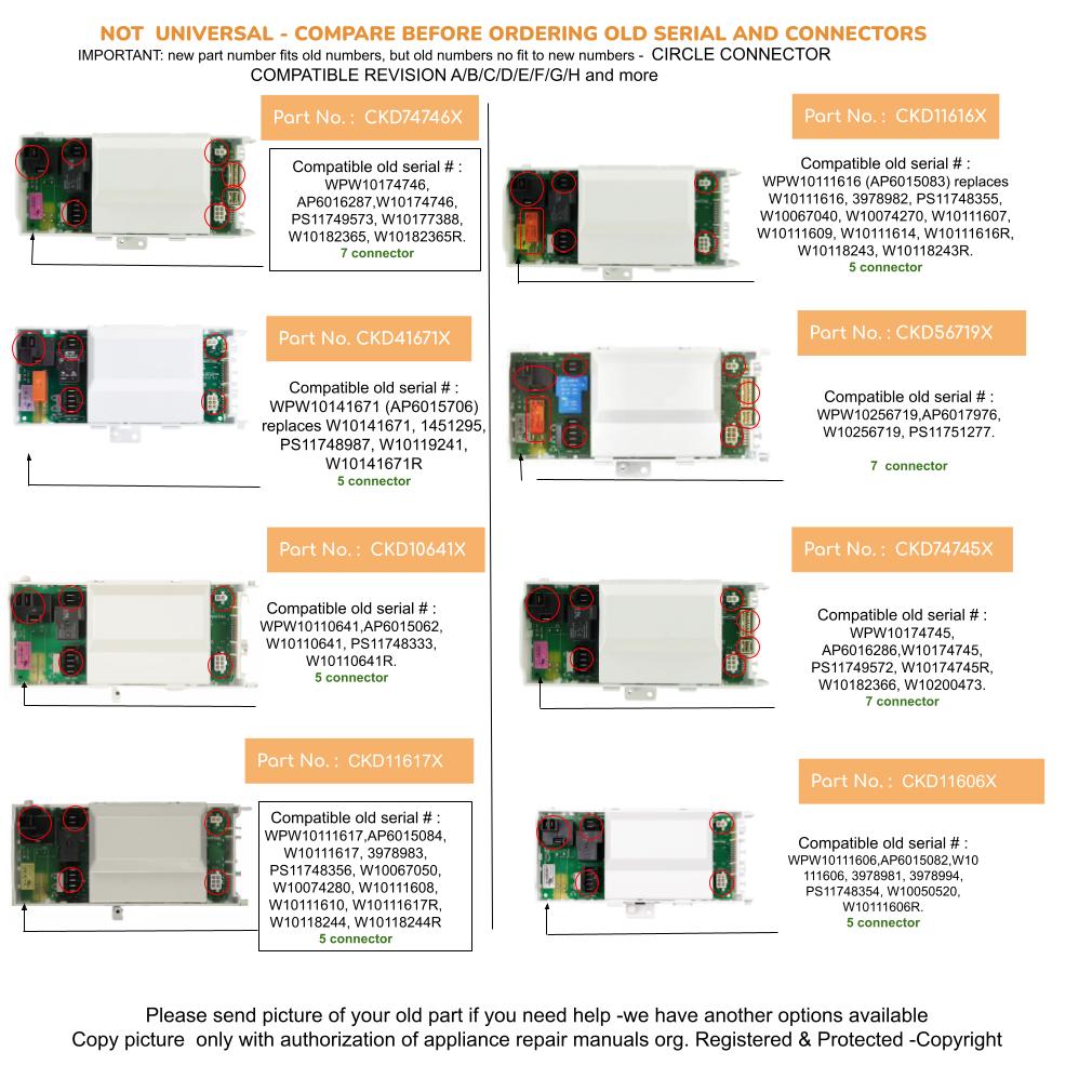 SERIAL 40 old numbers REV. A B C D E F G H I , CKD10641X , WPW10110641,AP6015062, W10110641, PS11748333, W10110641R.